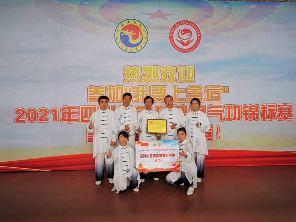 来全省26所学校的386名师生参加了比赛,我校由曹茂军、宋晓娜、汪睿、罗庆辉、杜阳、周宏宇、豆蕊、林芝八名老师组成的教工队荣获“我要上全运”2021年四川省学校健身气功锦标赛团体二等奖。