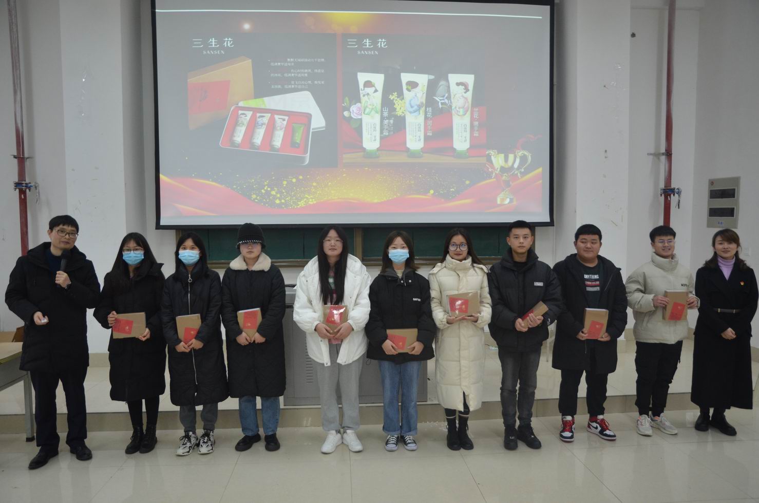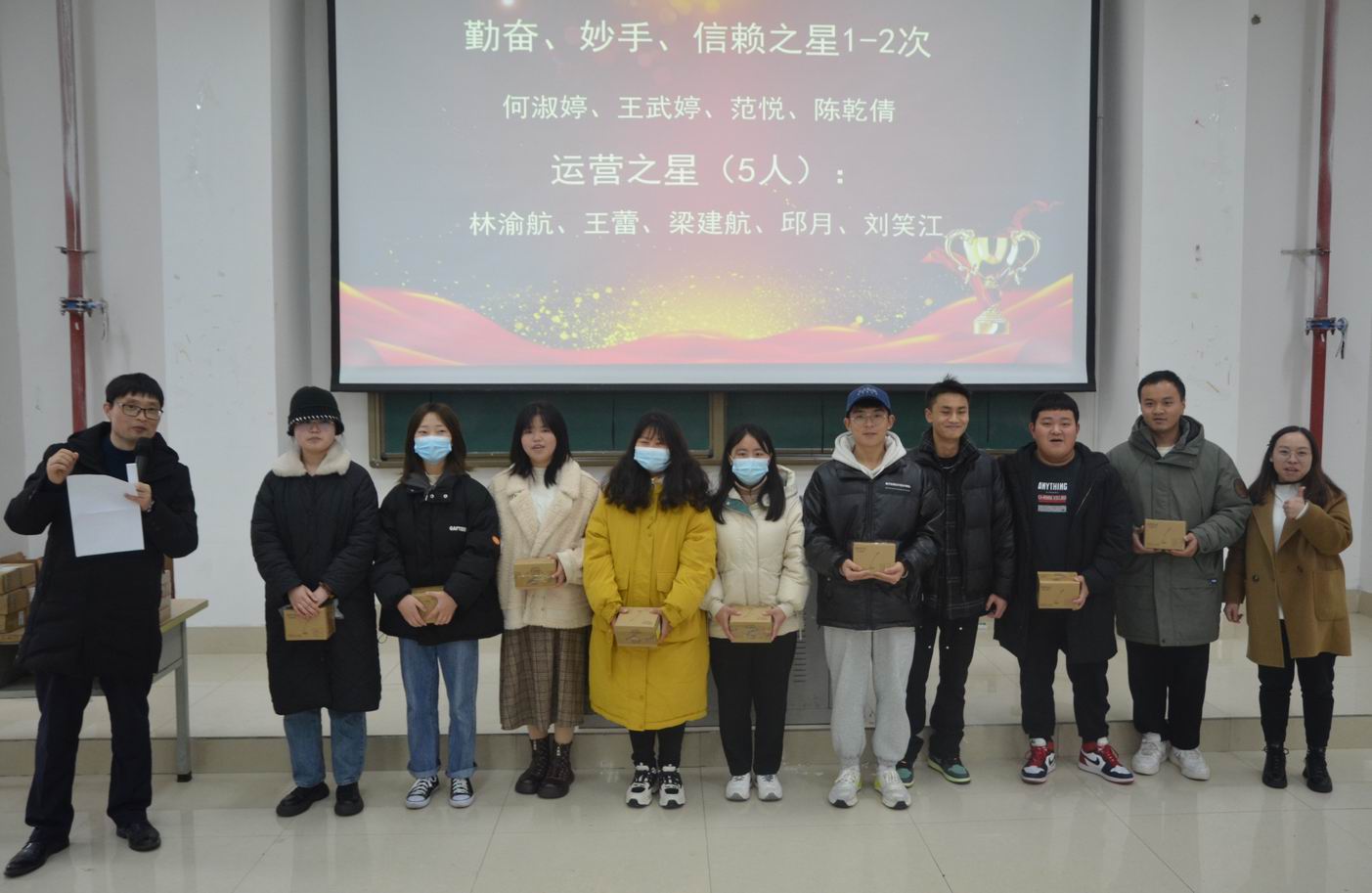 熊华书记宣读表彰文件后,20级辅导员老师分别向获得表彰的同学发放了奖品。