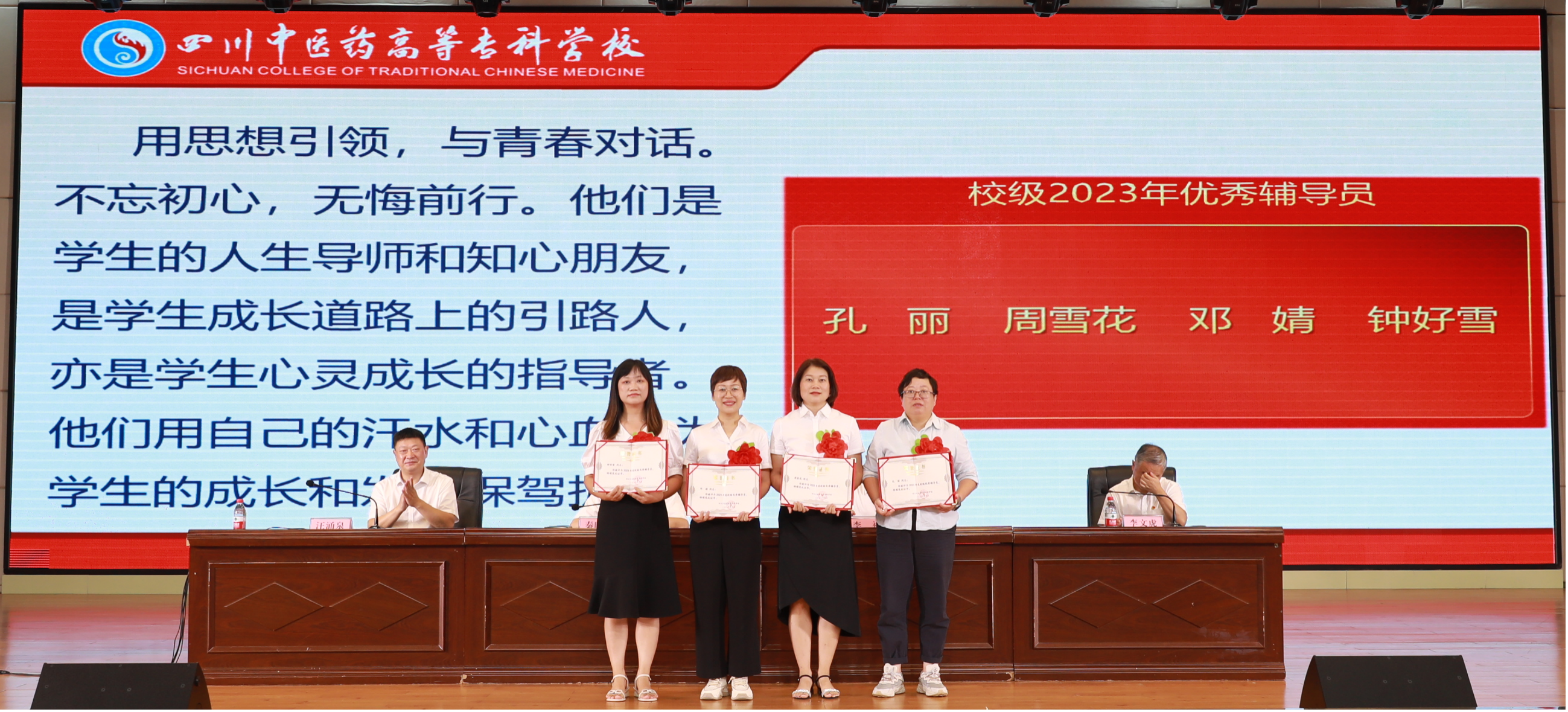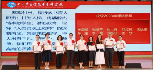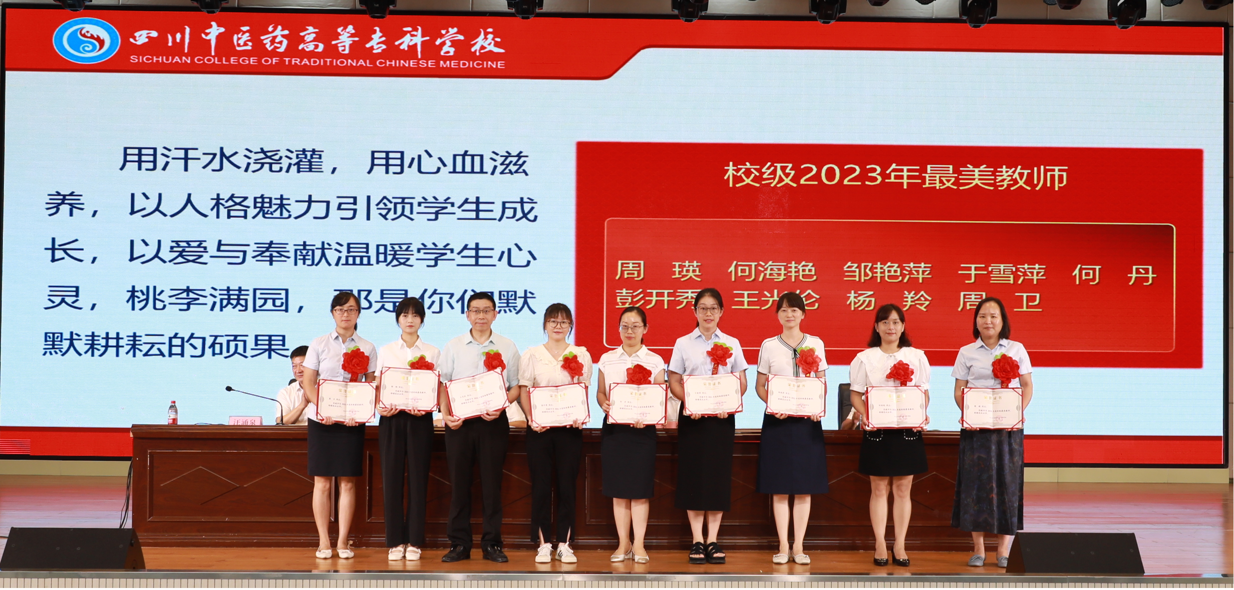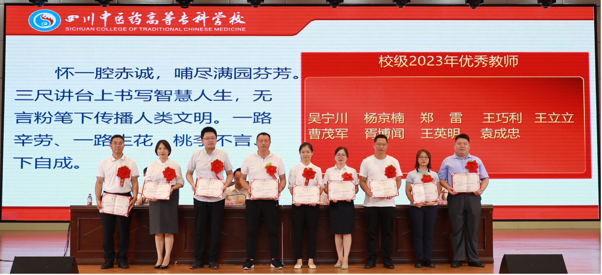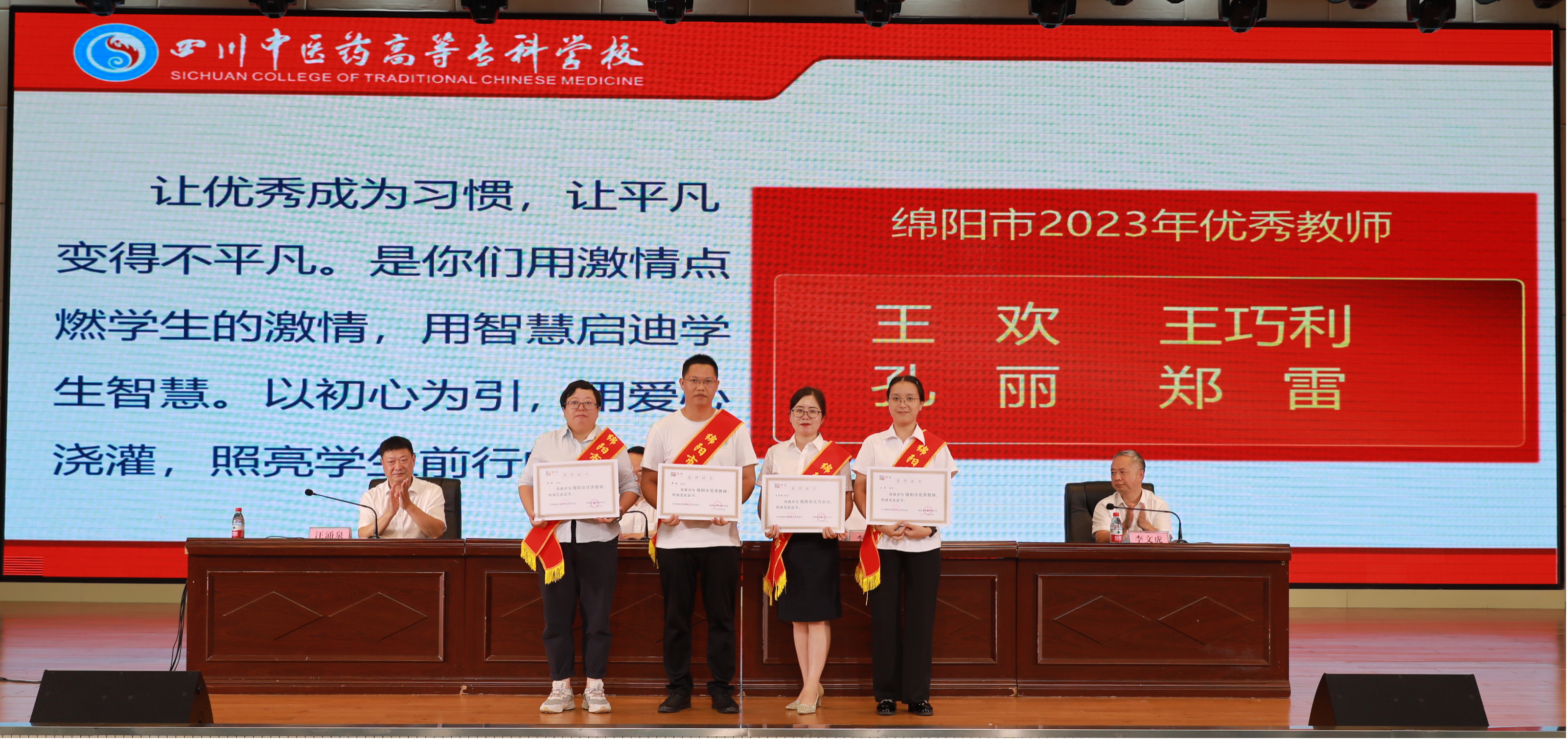 会议进行了退休教职工荣休仪式、新入职教师宣誓仪式、表彰仪式。我院王巧利老师获评绵阳市优秀教师;戴会群老师荣获校级师德标兵;王巧利老师、曹茂军老师荣获校级优秀教师;钟好雪老师荣获校级优秀辅导员;于雪萍老师荣获校级最美教师;中医骨伤团队荣获校级最美教师团队。