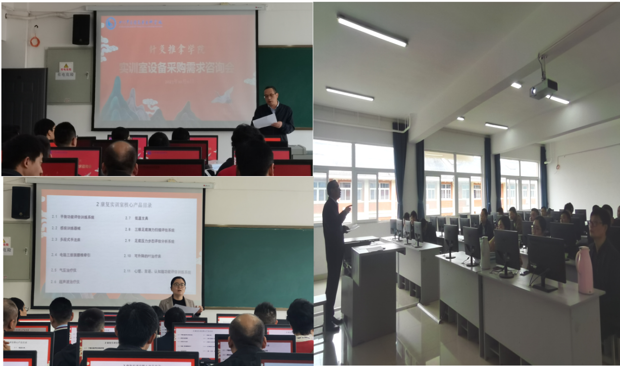 针灸推拿学院一直致力于培养高水平的技能人才,为我国中医药事业的发展做出贡献。在教学过程中,实训室设备的完善与更新对于提高学生的实践操作能力具有重要意义。为此,学院于2023年10月11日,在蒋永忠院长、熊华书记及王巧利副院长的领导下,召开了实训室设备采购咨询会,本次会议搭建了设备供应商和针推康复一线专业教师的交流平台,助力我院升本专业实训室建设的升级,对针灸、推拿实训室与康复实训室设备进行更新与补充,提高实训室的设备水平。