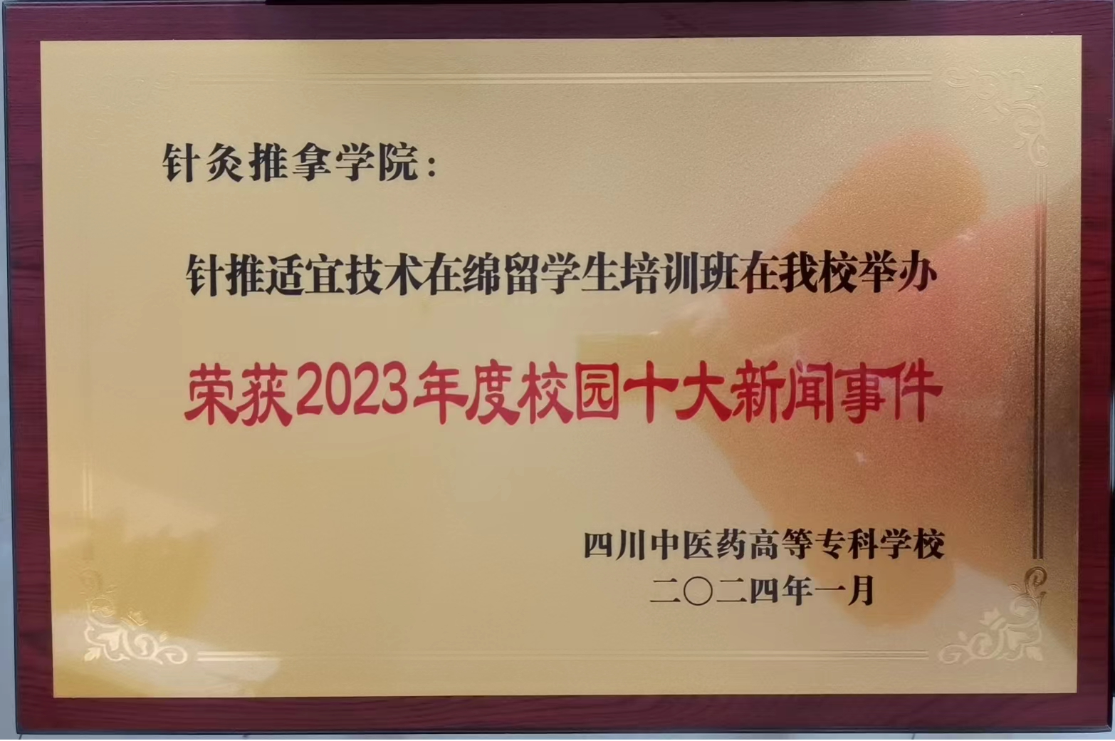 此外,针灸推拿学院针推适宜技术在绵留学生培训班在我校举办,荣获2023年度校园十大新闻事件。这一荣誉充分肯定了针灸推拿学院在推广针推适宜技术、培养留学生方面的努力。我们期待着在未来的国际交流与合作中,针灸推拿学院能够再创佳绩。