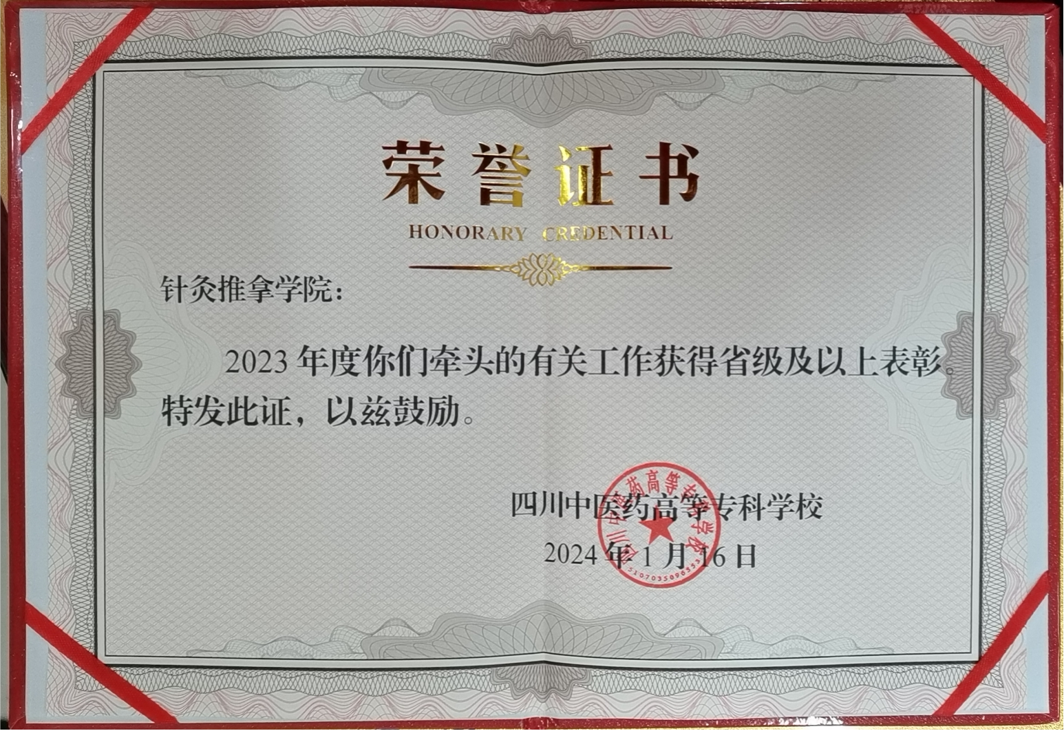 2023年度,针灸推拿学院在各项工作中取得了骄人的成绩,赢得了省级以上的表彰和荣誉。在此,学院向全体老师员工表示衷心的祝贺和感谢,正是您们的辛勤付出和努力,让针灸推拿学院在众多领域取得了丰硕的成果。