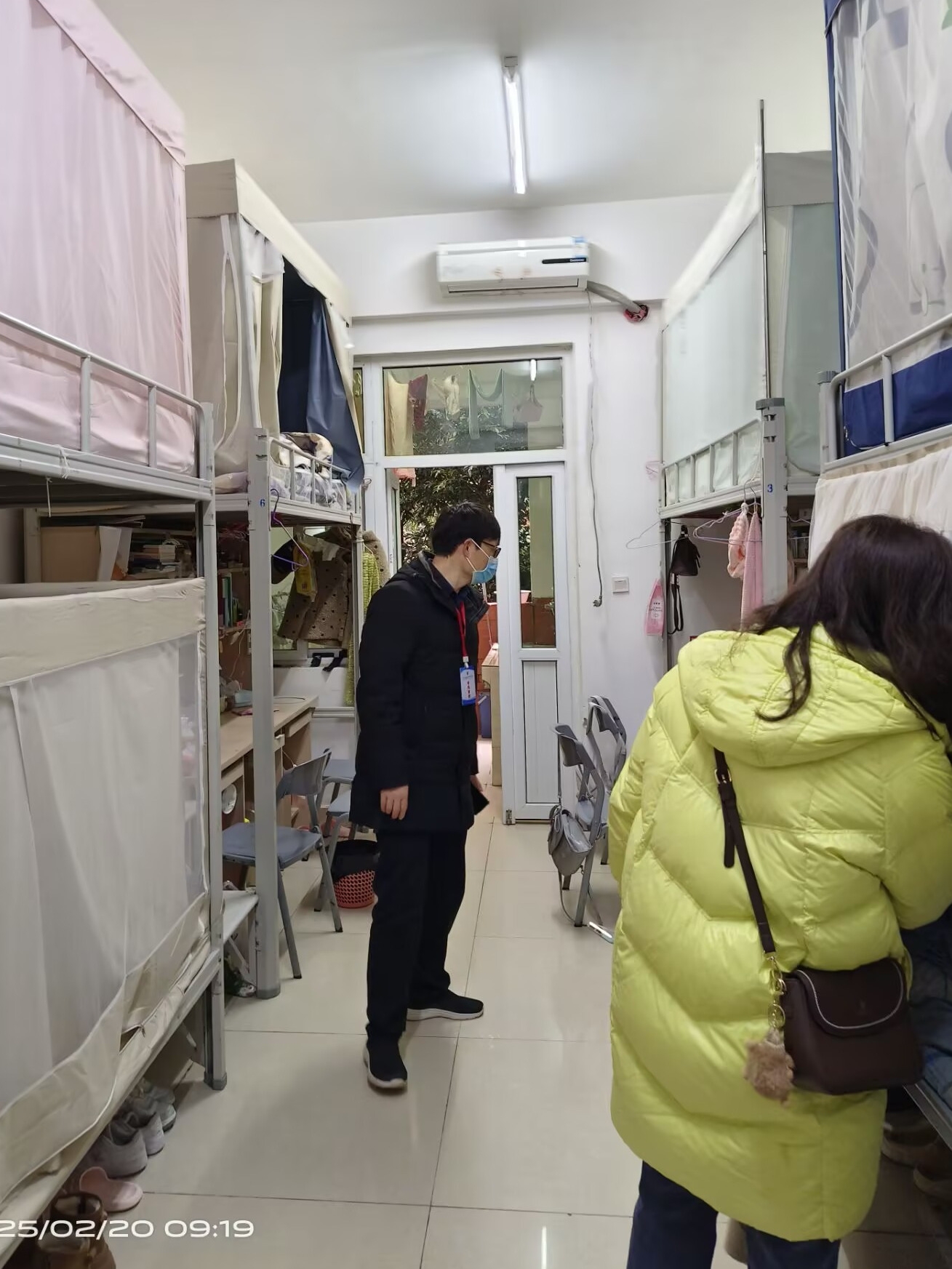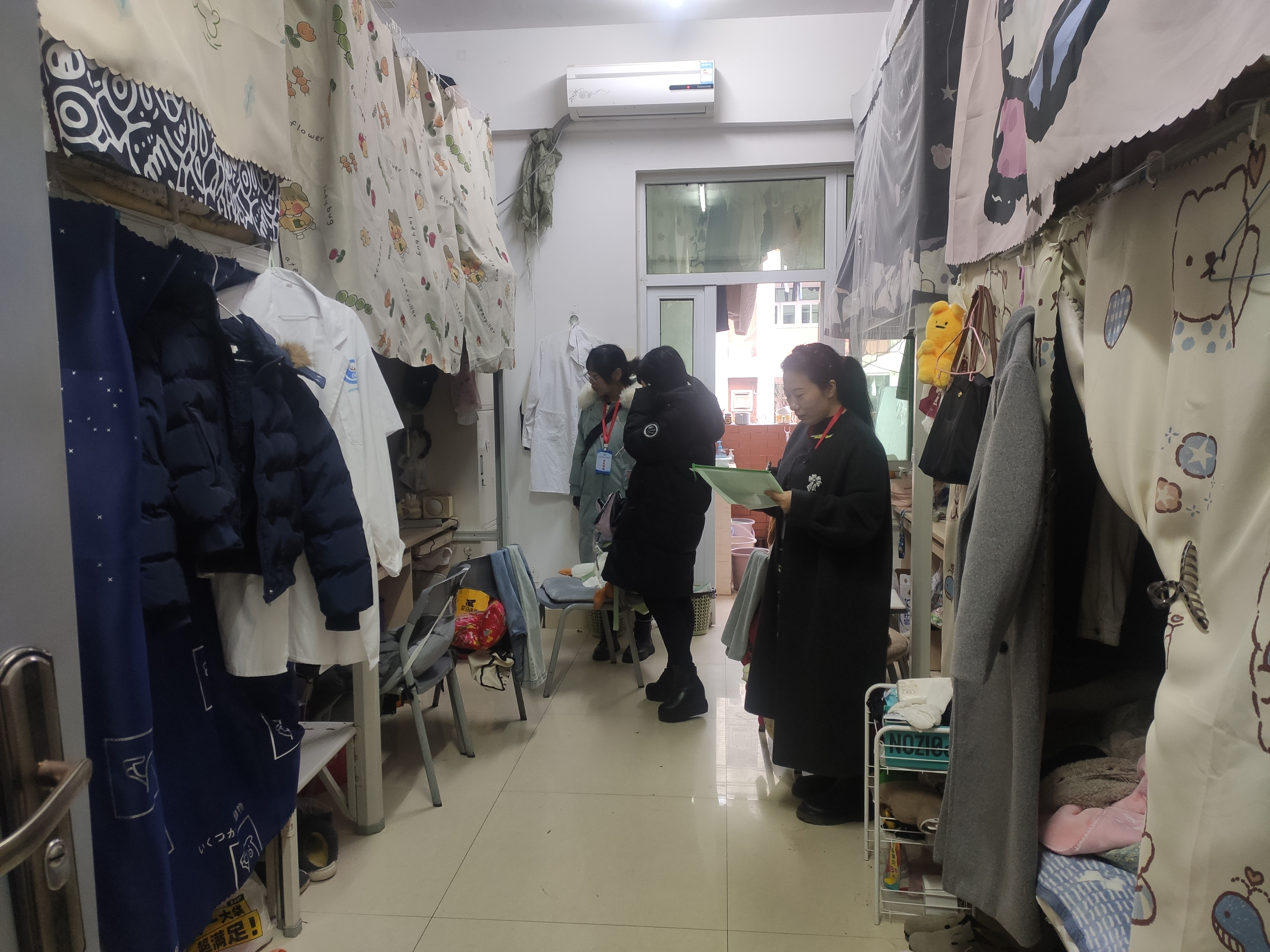 在学生宿舍重点检查寝室卫生、安全和学习氛围。大部分寝室保持整洁有序,学习氛围浓厚,但少数寝室中个人物品摆放杂乱,学生离寝未断电、使用电热毯等情况,存在安全隐患。