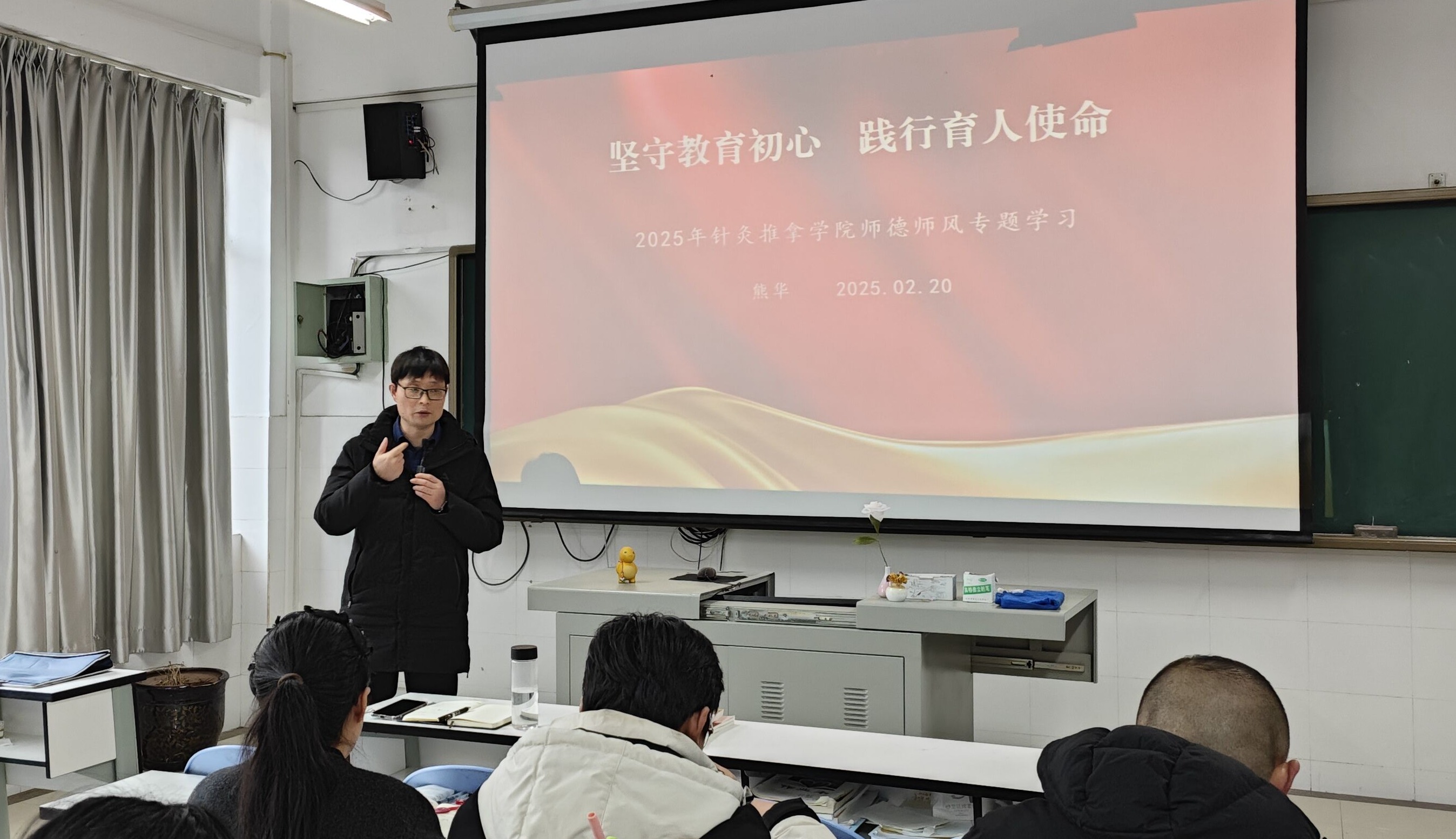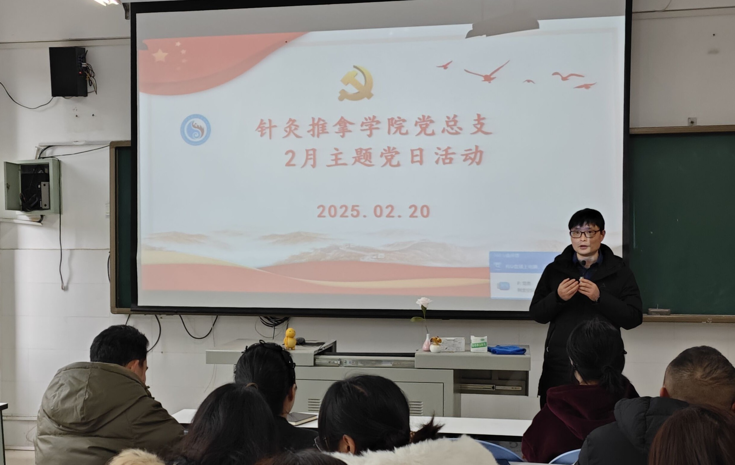 2月20日下午,针灸推拿学院党总支在南区6教203组织开展2月主题党日活动,由总支书记熊华主持,全体党员同志参加。本次活动由两个环节组成,第一环节特邀我校创新创业学院阎凌翔、唐伟懿两位老师到场就如何开展2025年学生创新创业工作进行培训和交流。第二环节为支部书记讲党课,以加强师德师风建设,进一步激发全体党员的责任感和使命感,提升学院开展创新创业工作能力。