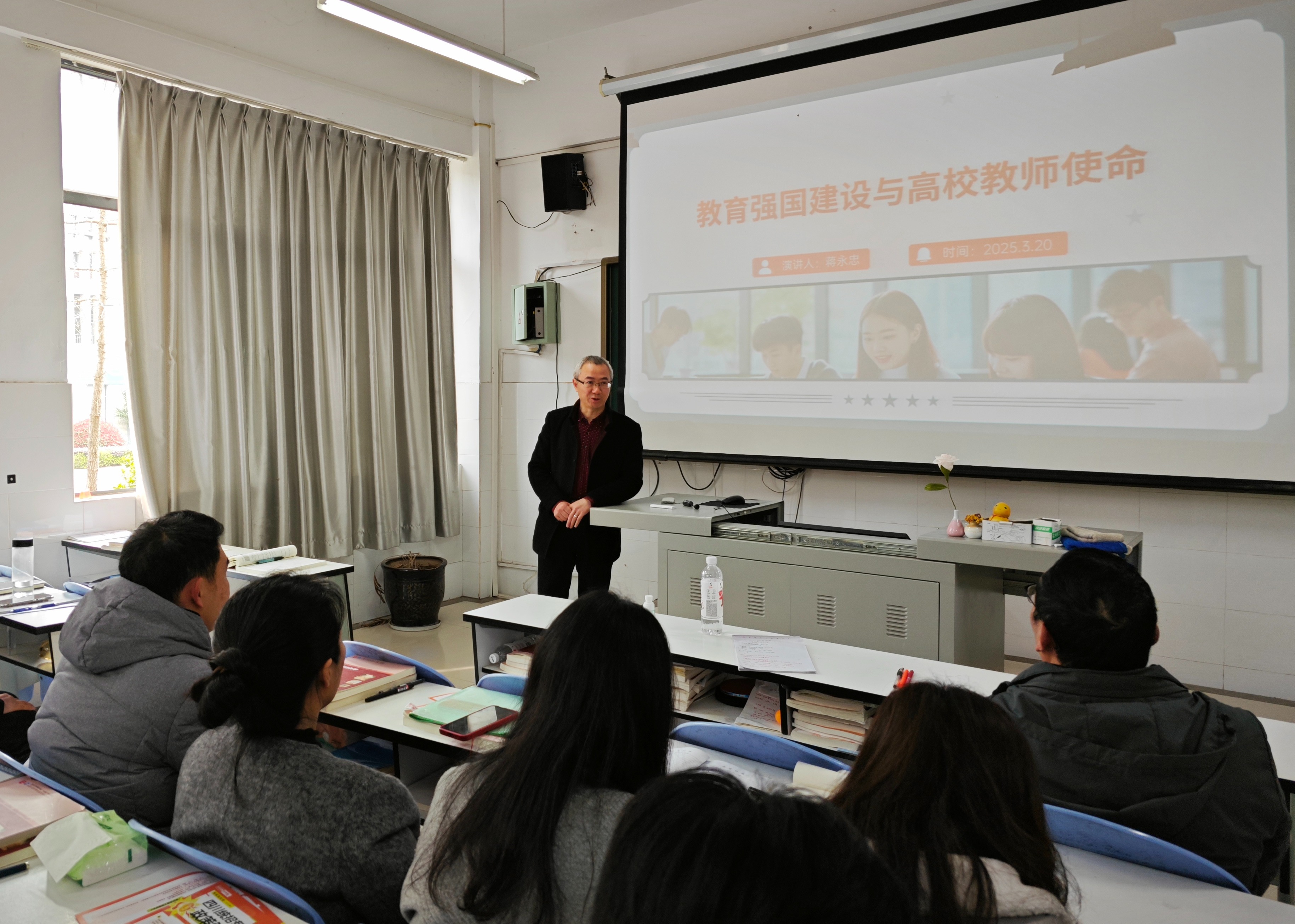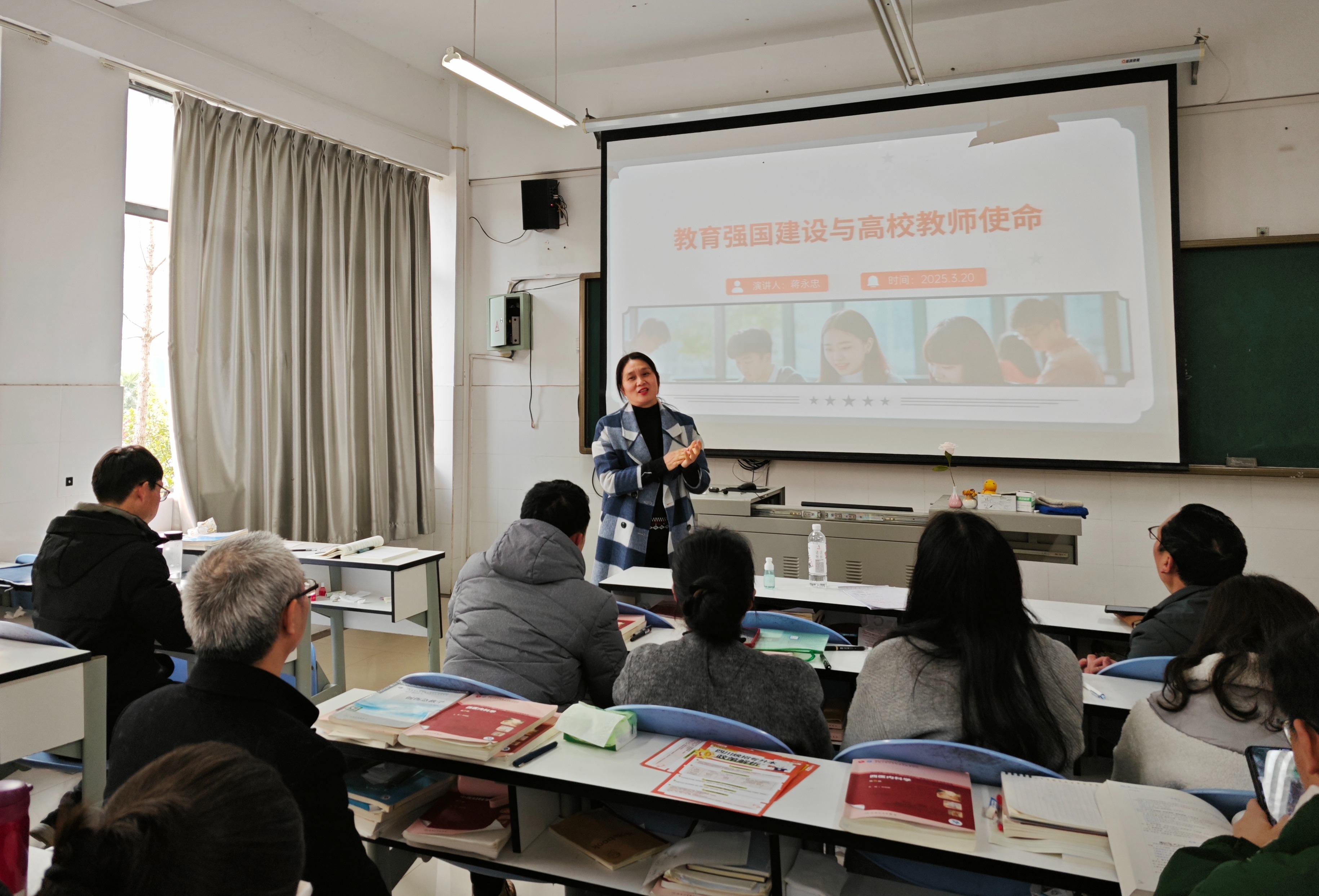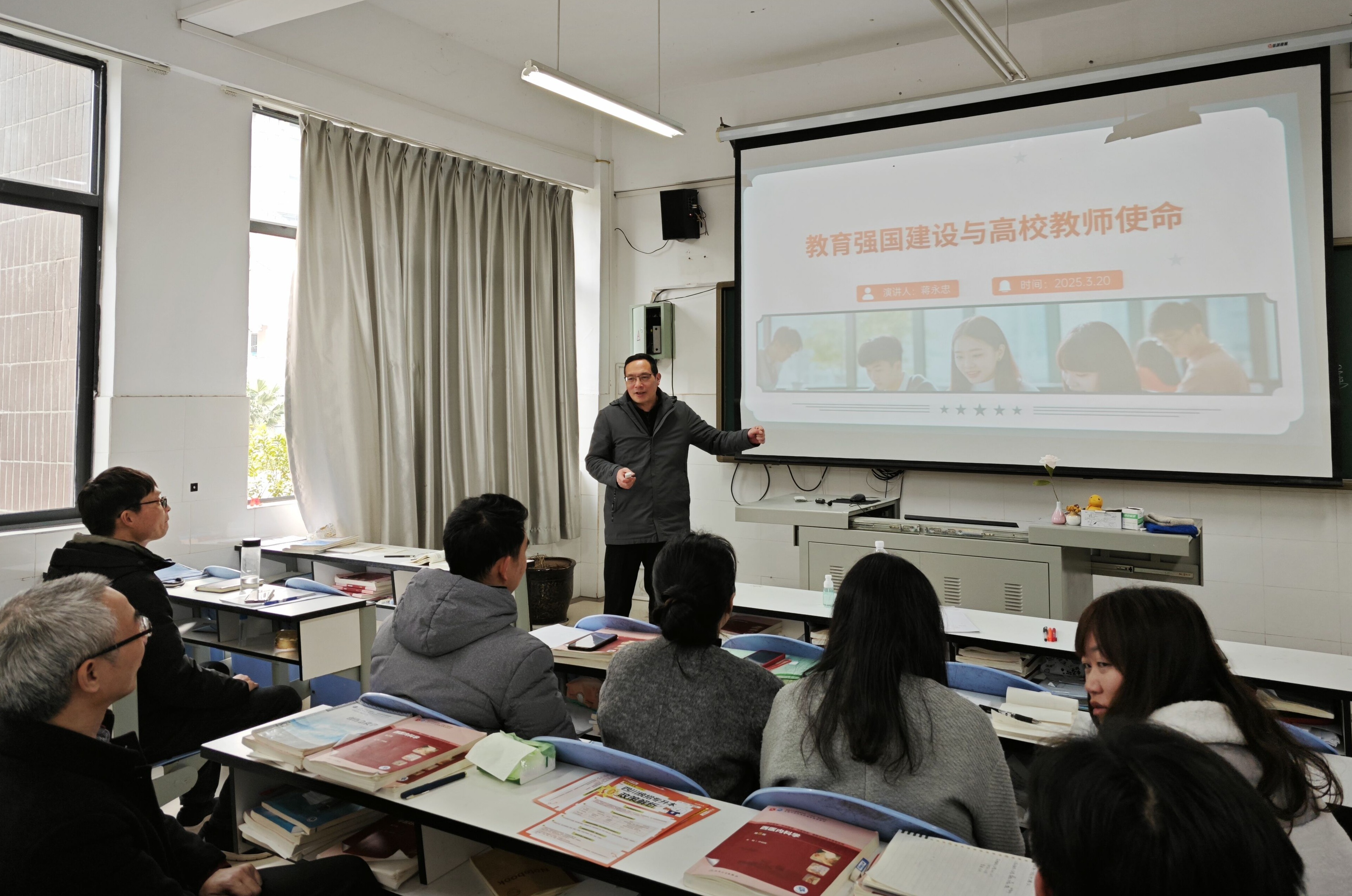 在教育强国专题学习中,教工支部书记蒋永忠同志带来了题为《教育强国建设与高校教师使命》的党课,通过回顾德、日、美、新等国的教育发展史,阐述了教育对于国家崛起的重要性。同时,他结合我国教育强国建设的战略目标,分析了高校教师在新时代背景下的使命与行动。