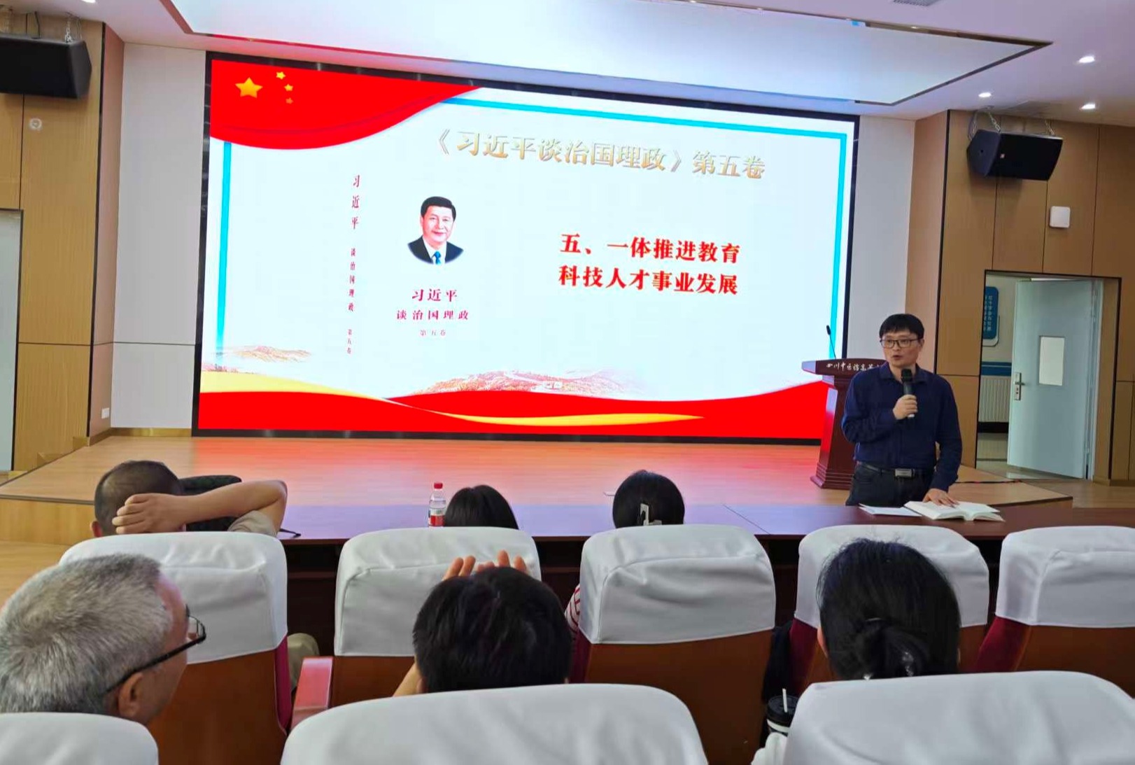 本次主题党日活动中,还集中学习了《习近平谈治国理政》第五卷中关于教育、科技、人才工作的重要论述,以及习近平总书记在庆祝中华人民共和国成立76周年招待会上的讲话精神,强化了党员的责任感与使命感。党总支书记熊华号召大家发扬艰苦奋斗精神,为学校“137”发展战略贡献力量。