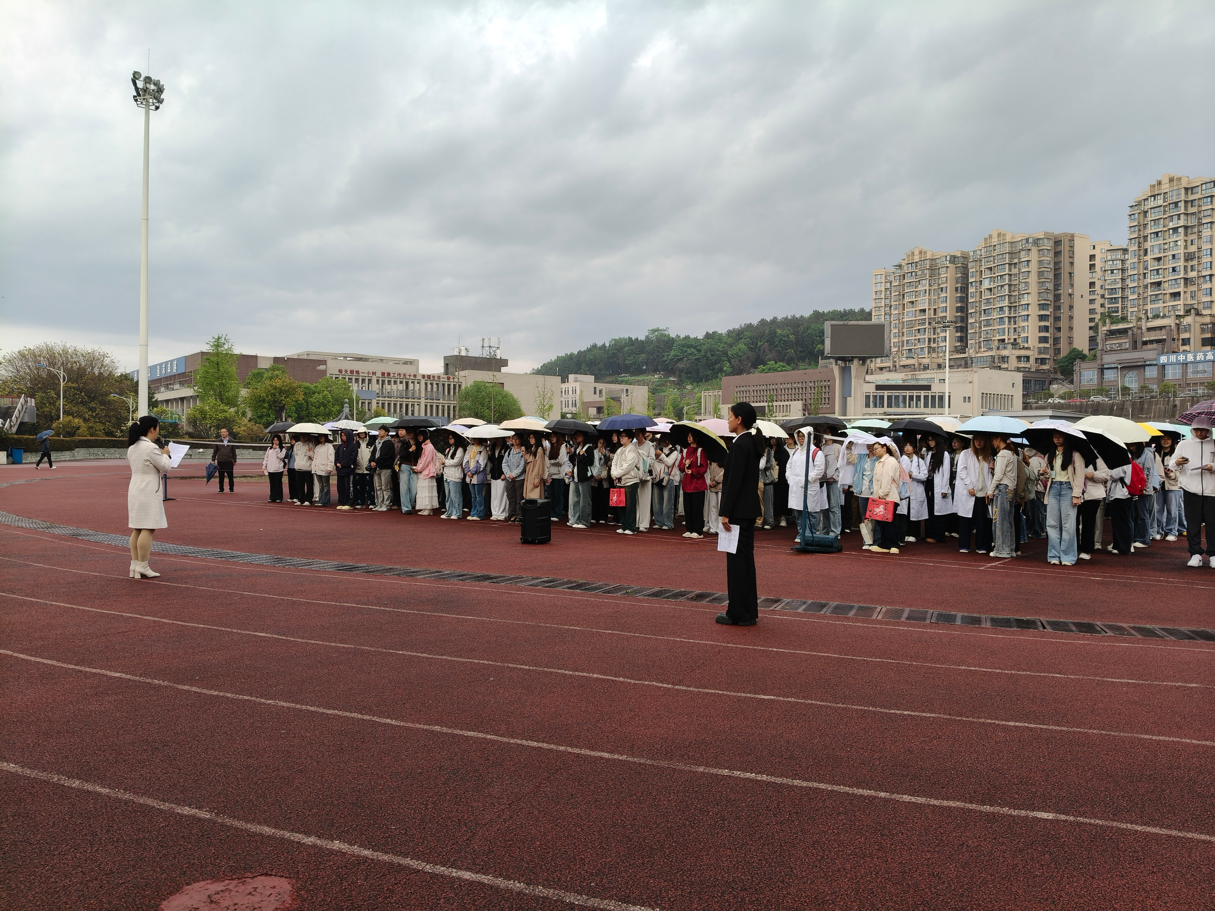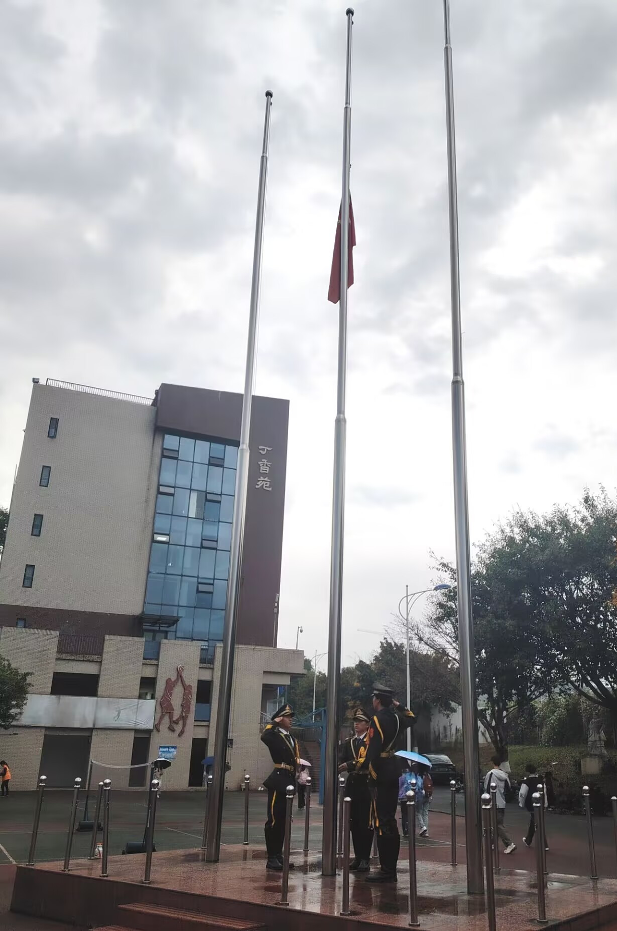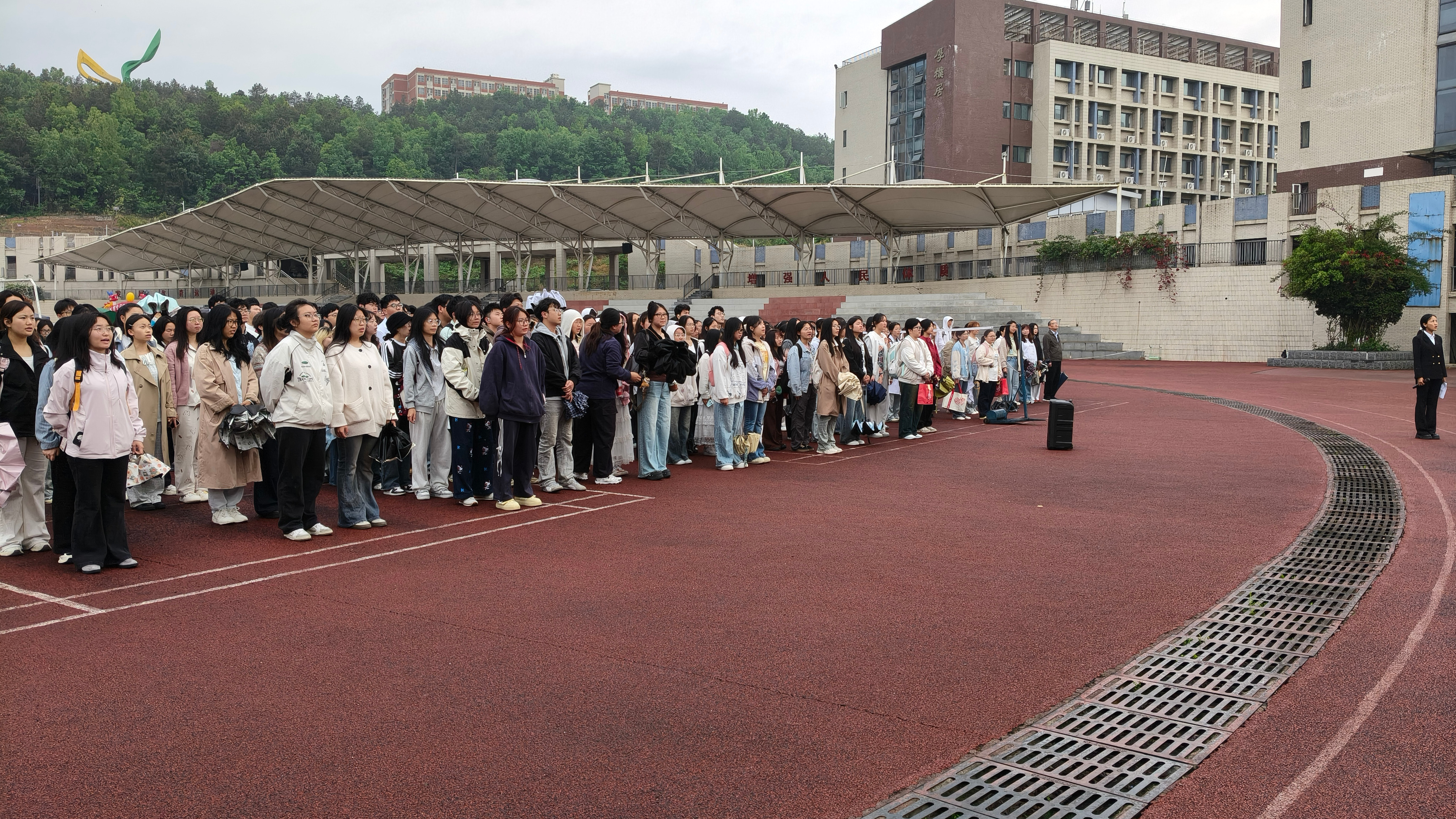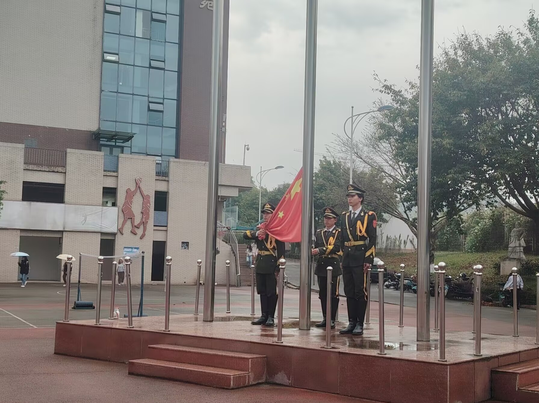 仪式最后,全体师生齐唱校歌,嘹亮歌声回荡在雨中校园,彰显着针推学子昂扬向上的精神风貌与赤诚家国情怀。此次雨中升旗仪式,既是一次深刻的国家安全教育,也是一堂生动的思政实践课,进一步凝聚了师生共识,激励大家以更坚定的信念、更昂扬的姿态肩负起时代责任,以青春之我、担当之我,守护国家安全,共筑强国梦想。