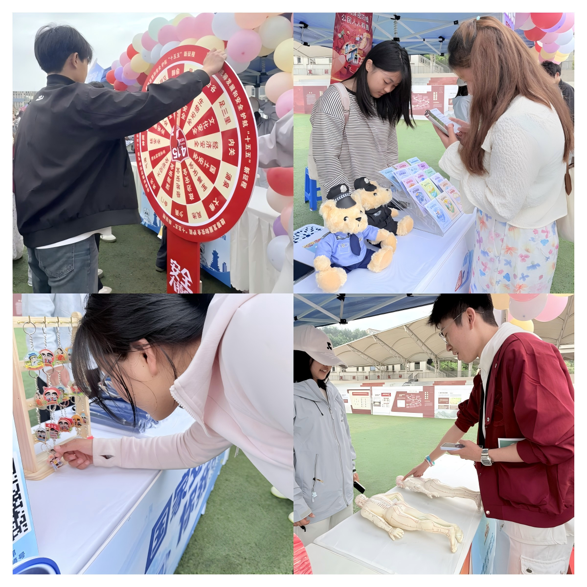 活动现场,醒目的国家安全主题大转盘吸引了不少师生驻足参与。随着转盘转动停下,一道道贴合生活的国家安全知识题目逐一呈现,大家有序排队参与转盘问答,工作人员在旁边仔细讲解题目,为答对的师生发放精美小奖品,轻松愉悦的氛围让国家安全知识入脑入心。