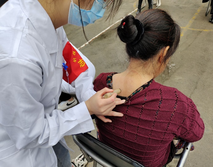 在志愿者的推拿按摩中,我们将课堂所学的用于其中,我们能感受到,被服务者的身体在慢慢的得到放松。看着他们脸上露出微笑,我相信是他们身体上的疼痛得到缓解的同时,他们也得到了心灵的慰藉。看着他们的微笑,志愿者们也由衷开心,这是一种自我价值得到认可的一种表现,但这也更激励着我,把自身最大的价值扩散到更多的人群中去。