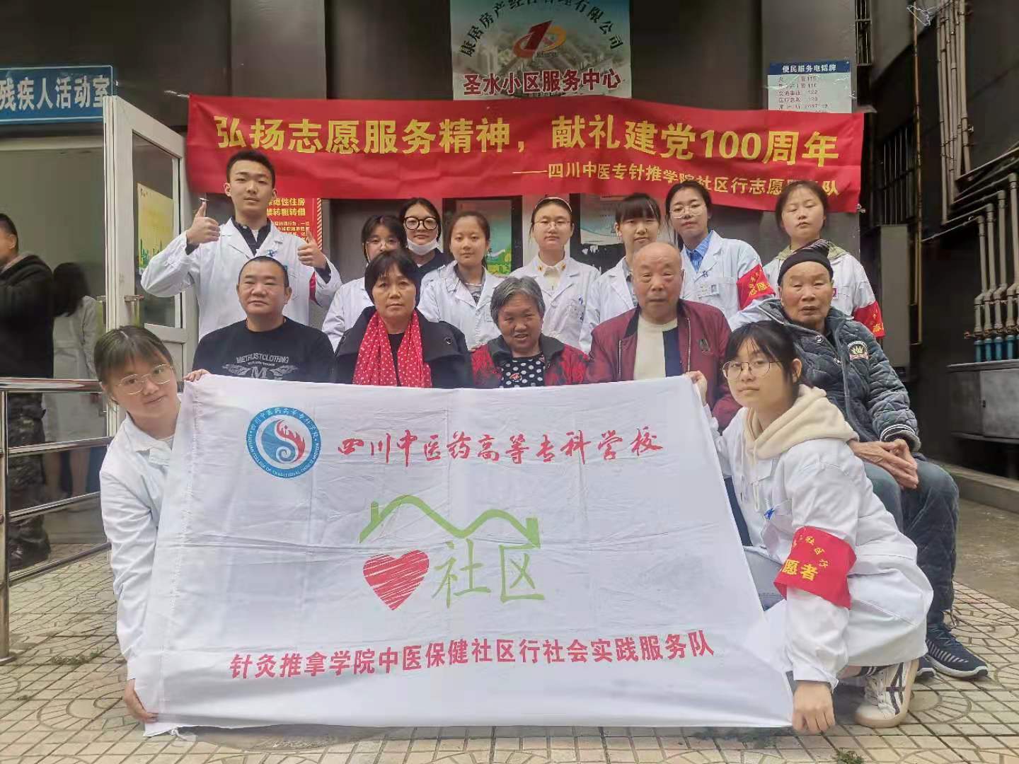 2021年4月17日早上8:00,针灸推拿志愿服务队准时到达北区校门集合,带好白大褂、工作牌、血压计后向圣水社区出发。