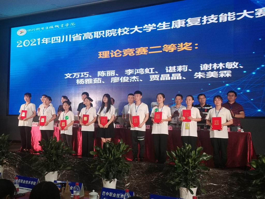 由四川省教育厅主办、四川卫生康复职业技术学院承办的2021年四川省高职院校大学生康复技能大赛在自贡举行,我校来自针灸推拿学院康复治疗技术的师生代表队荣获了包括理论竞赛二等奖在内的五个奖项。