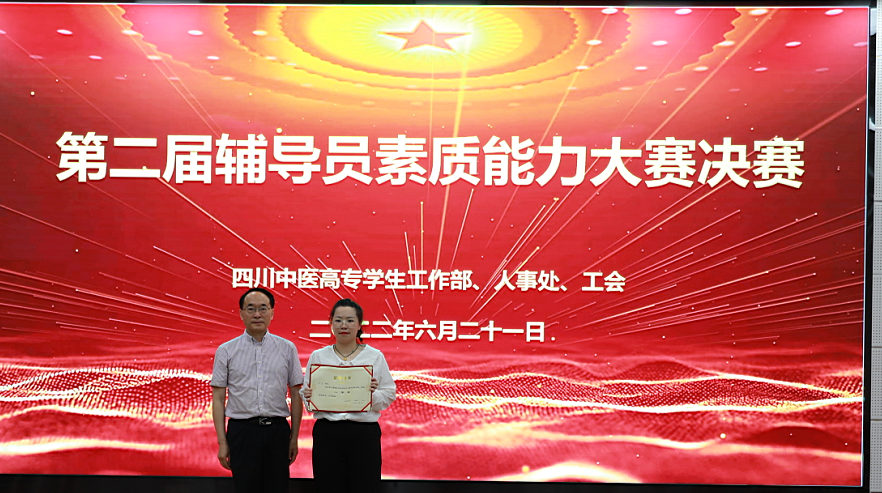 2022年6月21日,四川中医药高等专科学校第二届高校辅导员素质能力大赛在南区5楼会议室落下帷幕。本届大赛分初赛和决赛两个阶段进行,全校所有专兼职的辅导员都参加了比赛,我院辅导员高洁老师以初赛第一名的成绩入围决赛,并最终以优异的表现勇夺决赛一等奖。