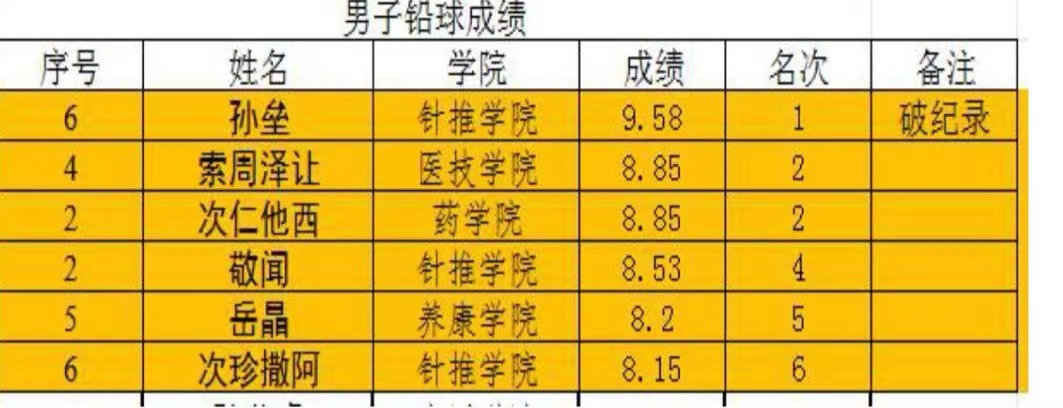 我院2022级体育保健与康复专业学子孙磊在第十四届校运会上打破男子铅球比赛记录