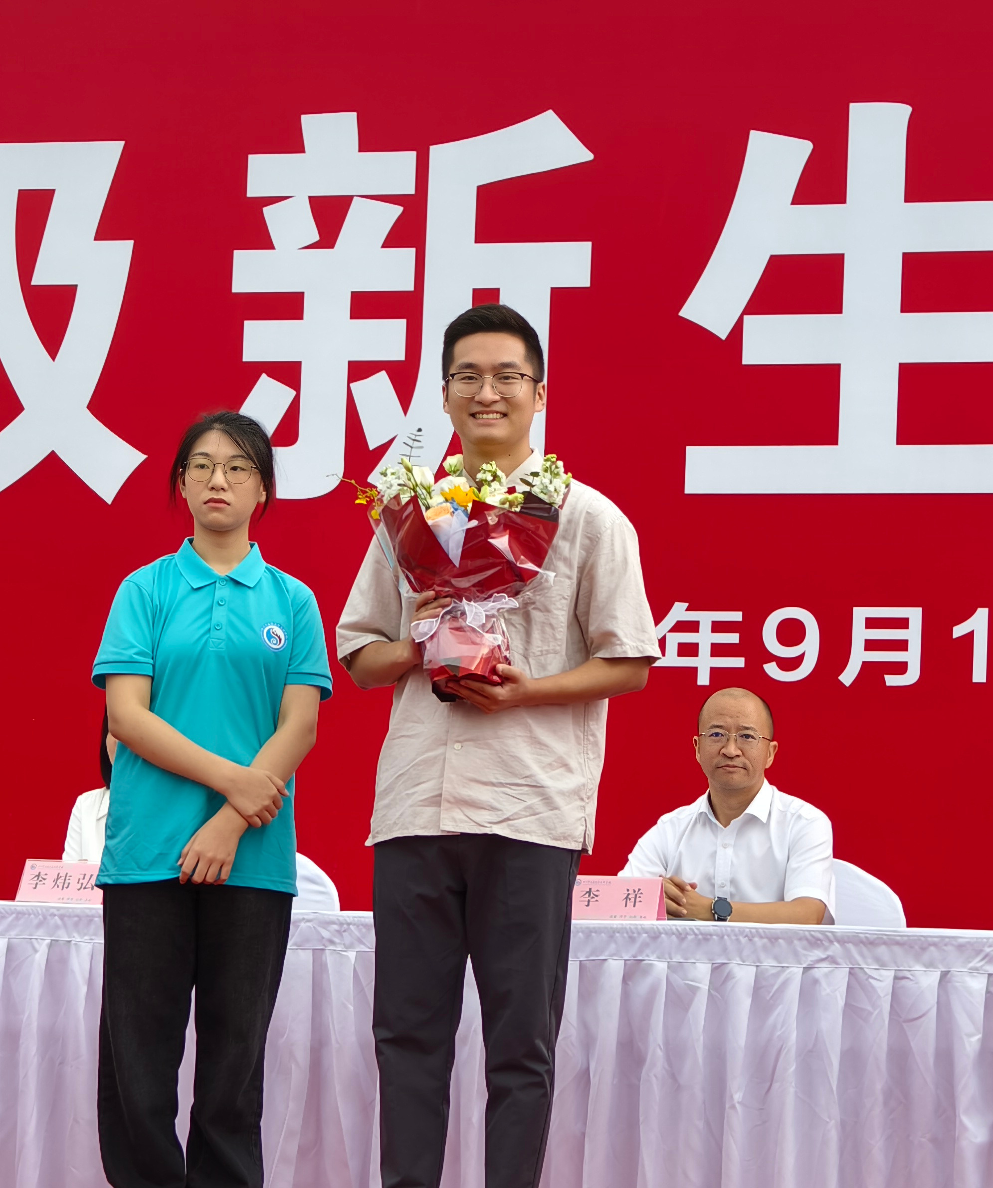 2024级新生备受鼓舞,热情上台献花。