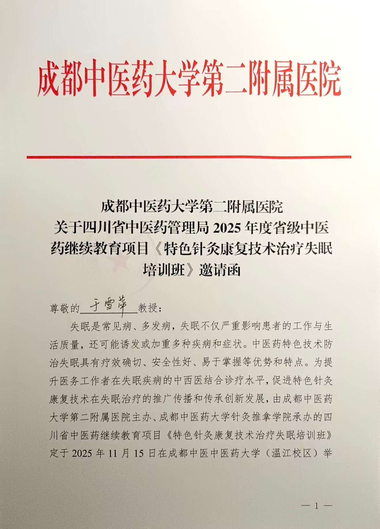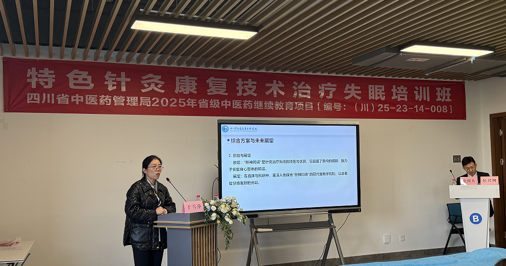 为提升医务工作者失眠的中西医结合诊疗水平,促进特色针灸康复技术在失眠治疗的推广传播和传承创新发展,四川省中医药继续教育项目《特色针灸康复技术治疗失眠培训班》于1115日在成都中医药大学(温江校区)举行,省内外100余名针灸同行代表和成都中医药大学数十名学生代表参会。我院针灸推拿专业负责人于雪萍副教授在培训班上开展了一堂名为“形神同调防治失眠的临床运用”的主题讲座。