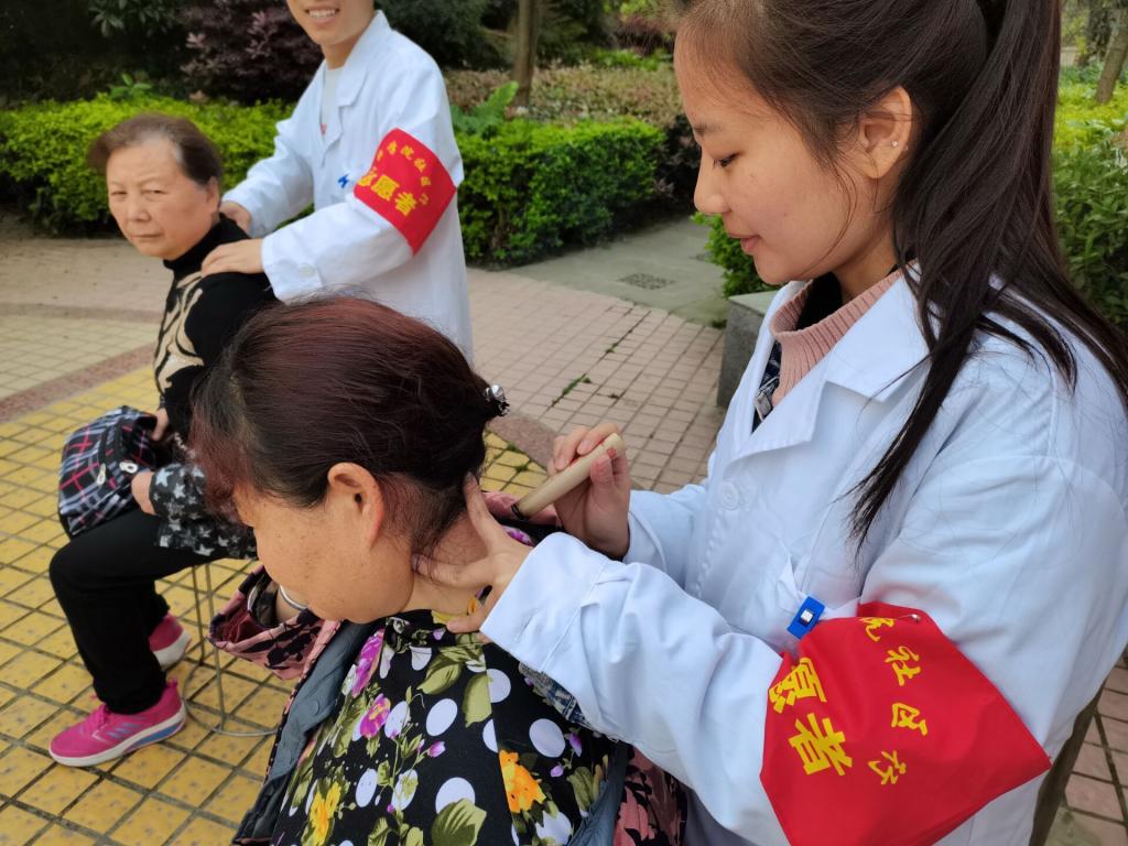 来自针灸推拿、中医骨伤、康复治疗技术、中医康复和体育保健与康复的30余名志愿者参与了此次活动,志愿服务的内容包括测量血压、健康宣教、艾灸推拿,等等。服务人次80余人,同学们的热心服务受到了当地社区居民的一致好评。