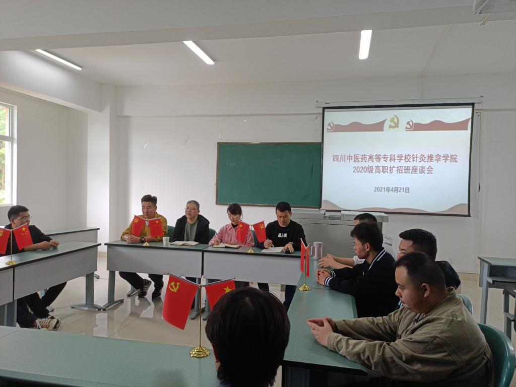 为全面、深入了解2020级高职扩招班学生以往的学习、生活情况,更好地做好服务工作,2021年4月21日,针灸推拿学院在4号实验楼512教室召开了2020级高职扩招班学生座谈会,听取建议和意见,会议由高职扩招班辅导员杜林,针灸推拿学院党总支书记林芝,针灸推拿学院教学干事李婷及15名高职扩招班班级学生代表。
