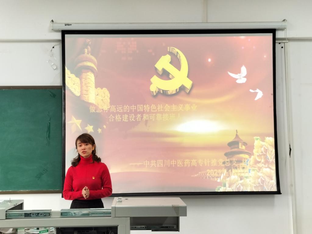 2021年10月11日,我院党总支副书记林芝同志在4号实验楼514教室为针推学院团学干部讲授了题目为《做志存高远的中国特色社会主义事业合格建设者和可靠接班人》党课,有近40人参加了此次党课。
