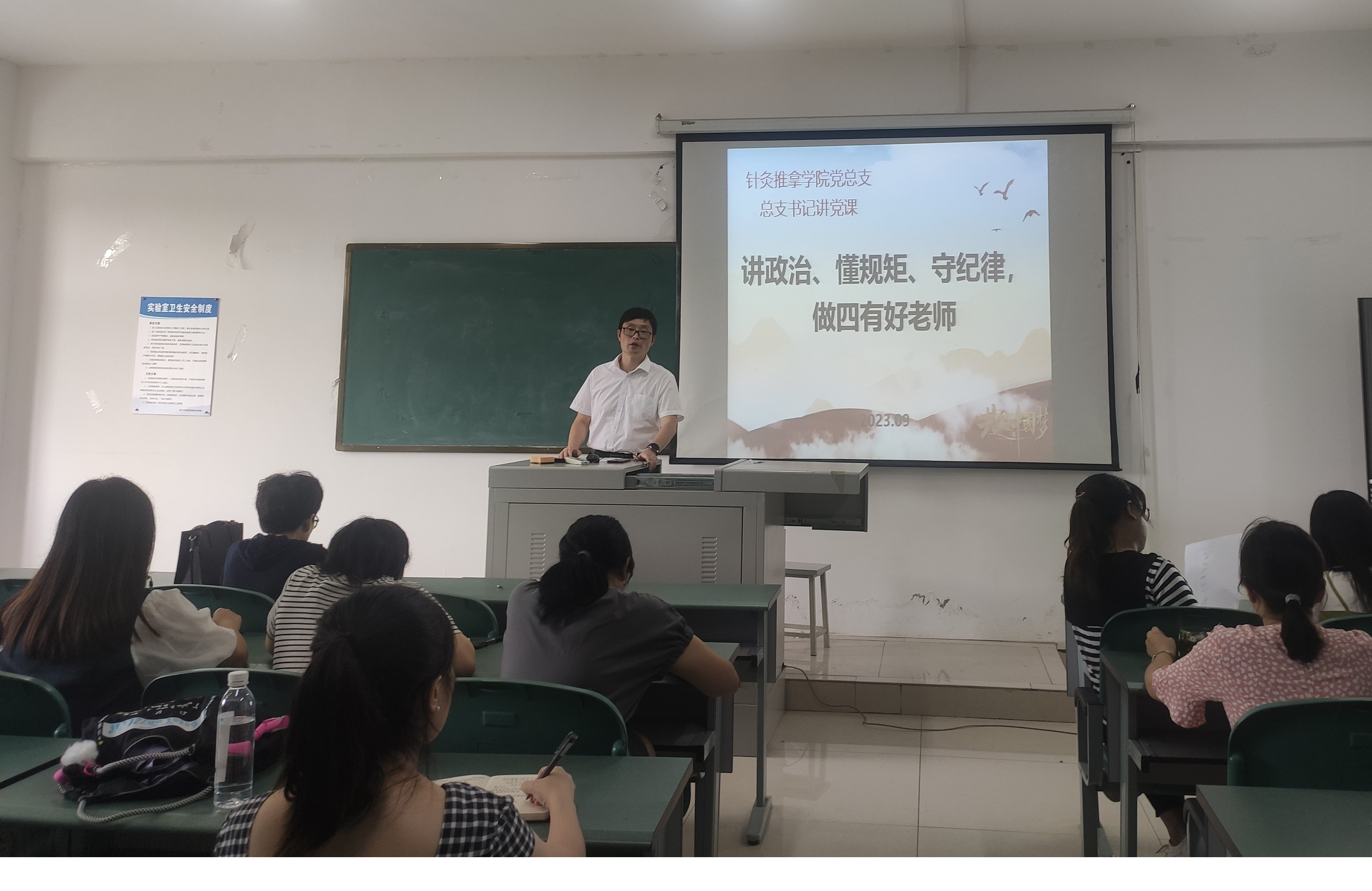 最后,熊华同志以“讲政治、懂规矩、守纪律,做四有好老师”为主题为全体党员讲授了一堂的党课。他从习近平总书记关于纪律规矩和对教师队伍建设的重要论述开始谈起,结合教育部第十三批、十二批违纪违法典型案例,对《新时代高校教师职业行为十项准则》《教育部关于高校教师师德失范行为处理的指导意见》《事业单位人事管理条例》《中华人民共和国监察法》、党的有关纪律规定进行了详细阐述,提醒党员同志一定要引以为戒,牢固树立底线意识,增强遵守教师职业道德和职业操守。牢记新时代教师的使命与担当,争做有理想信念、有道德情操、有扎实学识、有仁爱之心的四有好老师,在我校上档升级关键时期不忘初心,勇于奉献,为学校发展添砖加瓦。