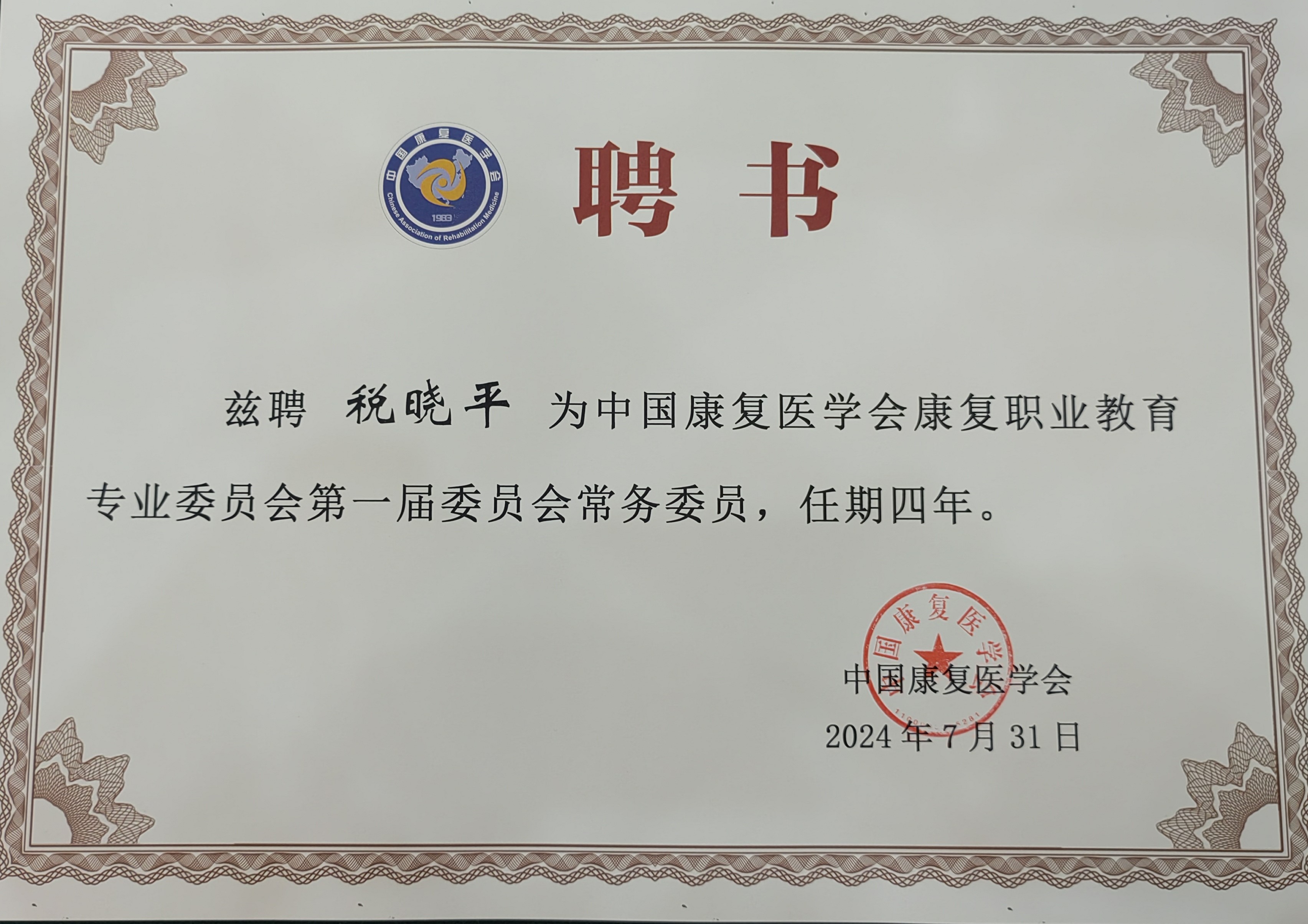 大会选举产生了第一届中国康复医学会康复职业教育专业委员会主任委员、副主任委员和常务委员,成立了专委会功能型党支部,税晓平博士当选为常务委员。